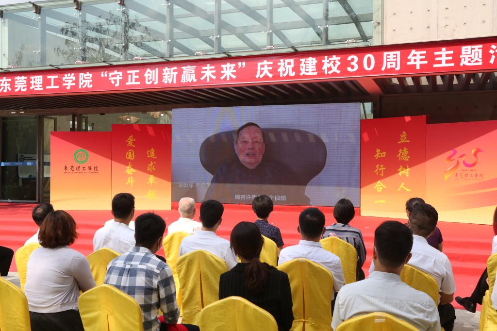 2022年,莞工迎来建校30周年。学校举办了丰富多彩的“守正创新赢未来”系列主题活动。名誉校长杨振宁先生向学校赠送《杨振宁传》和《晨曦集》,并通过视频方式表达祝贺,广大师生校友通过线上线下的方式为学校送上美好祝愿。